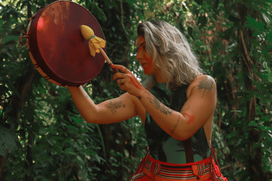 Na cerimônia em si, o ambiente é preparado para acolher diferentes processos. Há espaço para sentar, deitar, chorar, respirar, ficar em silêncio. A presença de uma equipe experiente é essencial para que, em qualquer reação mais intensa, exista suporte, orientação e cuidado. A música, os cantos e os instrumentos fazem parte do campo ritual, ajudando a conduzir a energia e a apoiar o trabalho interno de cada participante.